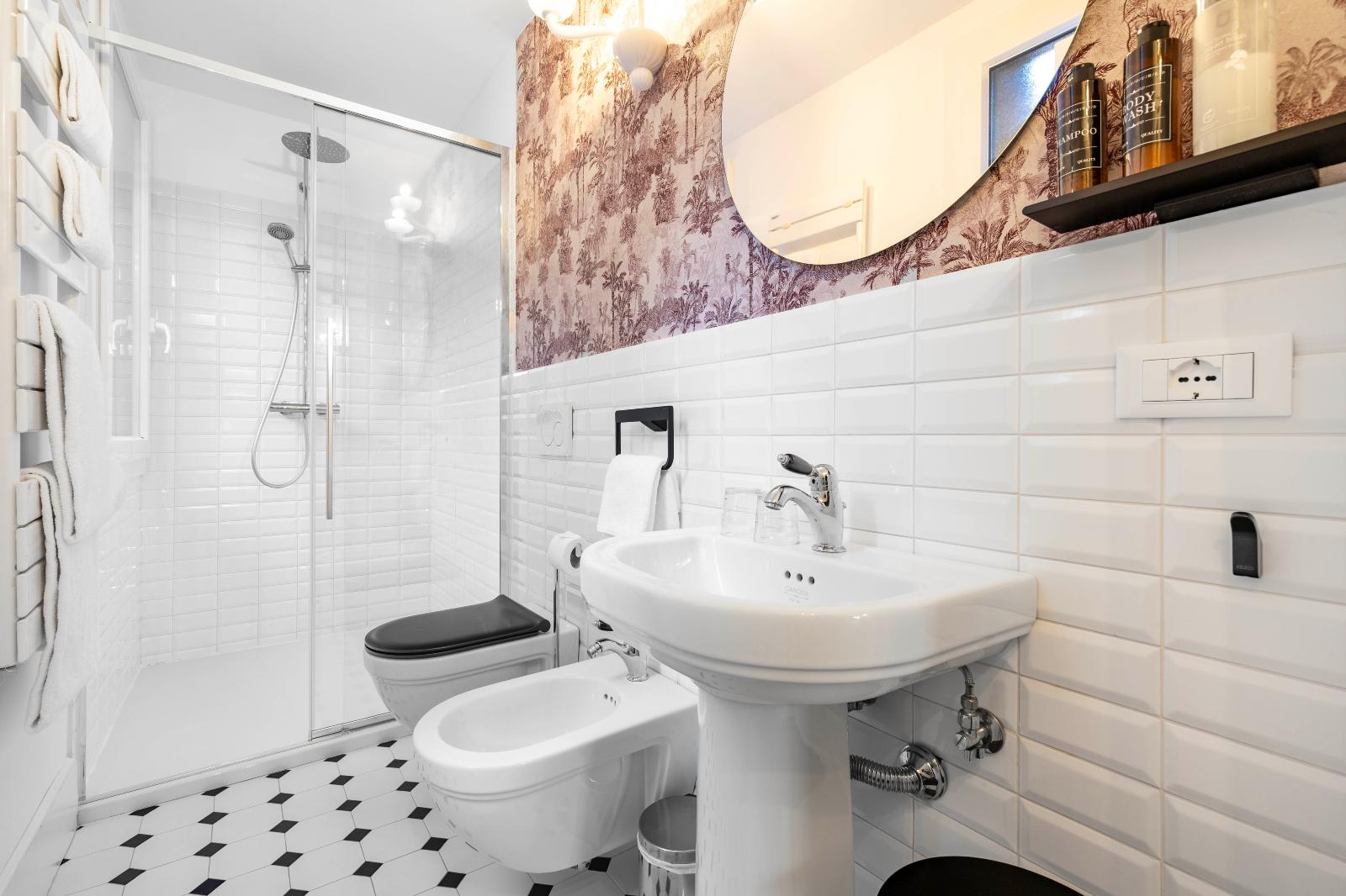 The suite includes a private bathroom shared between the two rooms (within the suite), equipped with a modern shower, fresh towels, and all the essential accessories for a pleasant stay.