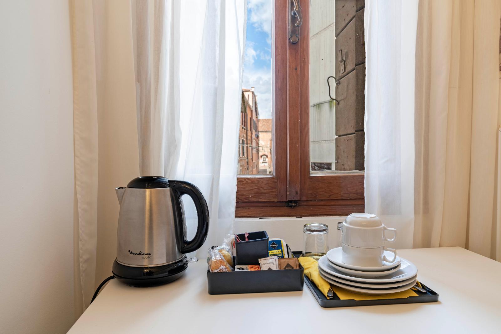 Each room overlooks either the property’s private inner courtyard, offering added tranquility, or a quiet calle tucked away from the city’s bustle — filled with natural light and glimpses of everyday Venetian life.