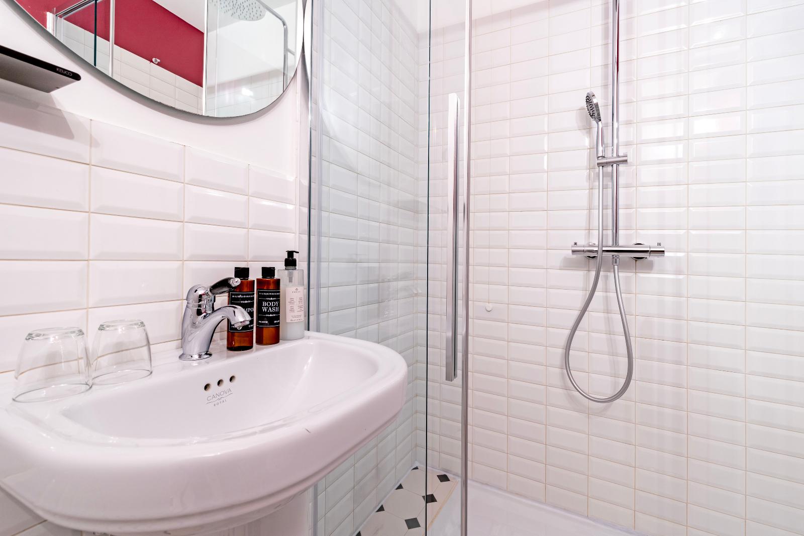 The private bathroom is spacious and modern, equipped with a shower, fresh towels, and all the essential amenities to ensure your comfort and well-being.